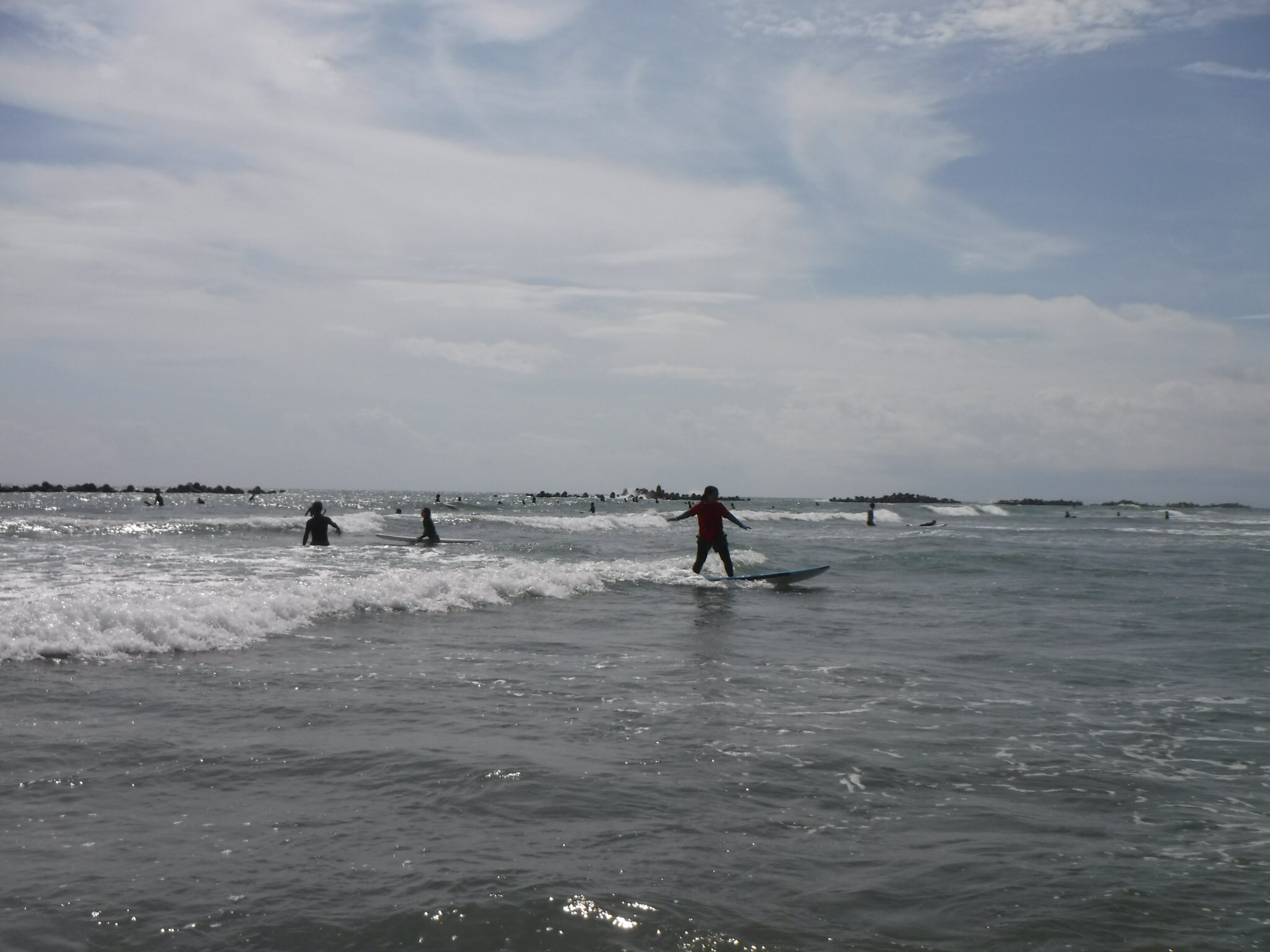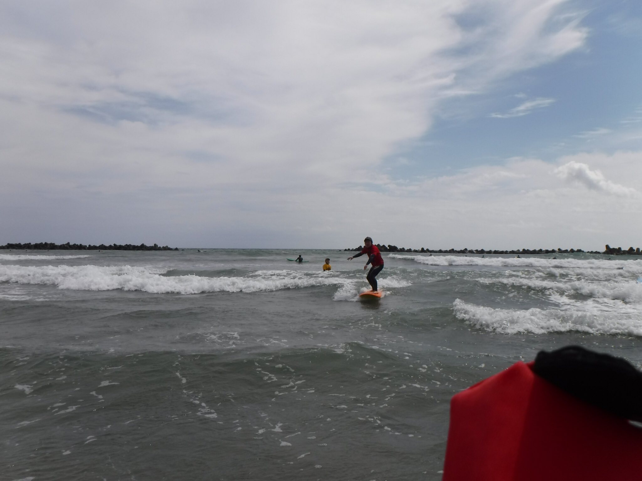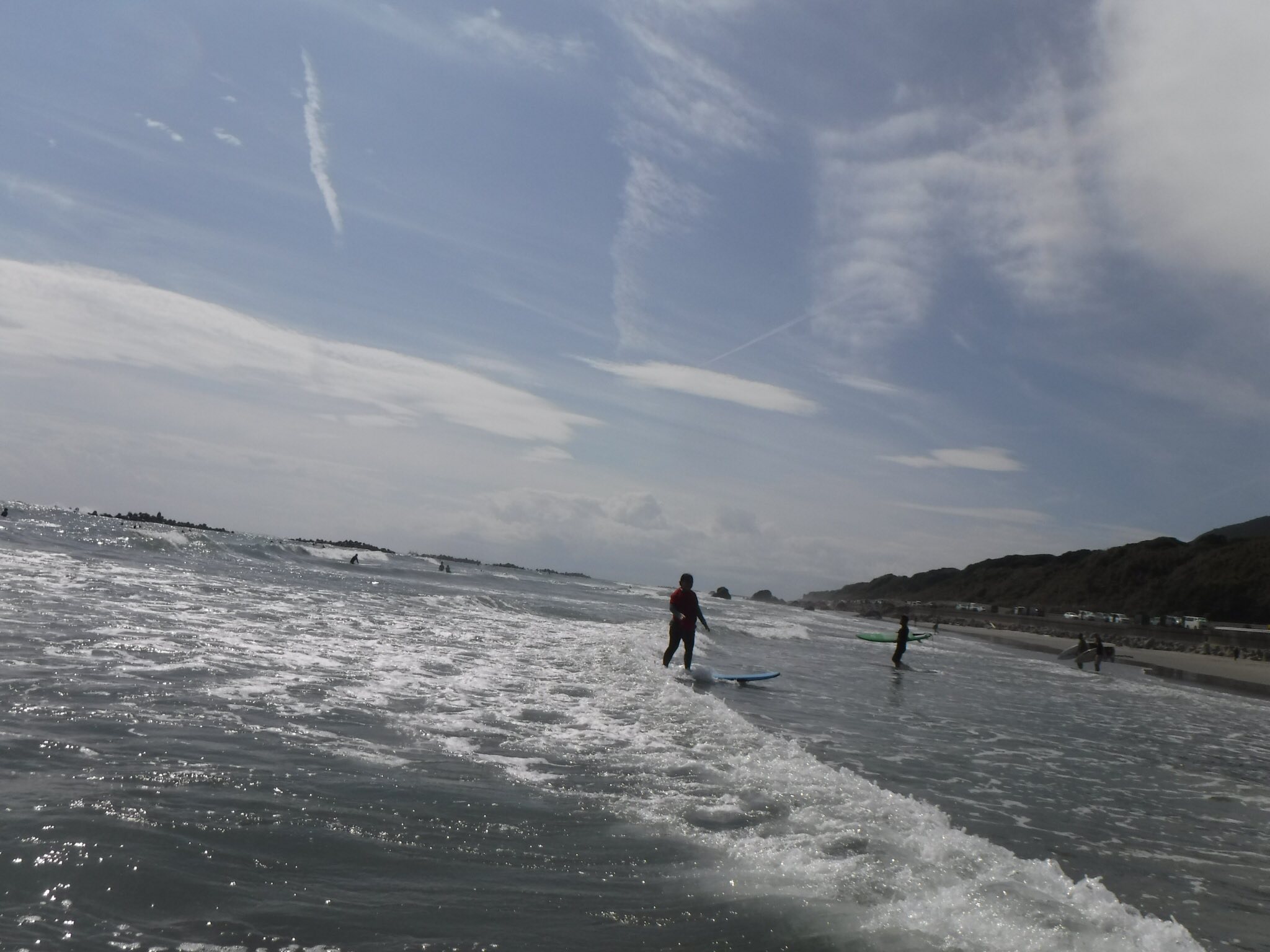 この日は風が強く新日ポイントへ移動してサーフィンスクールを行いました。