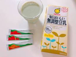 夜は初めて豆乳で青汁3杯飲んだよ~!