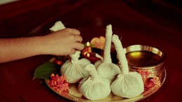マッサージの後にあたためたハーブボールを全身にあててくれるの♡