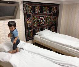 朝からブハラを観光して電車に乗って疲れたよねぇ。