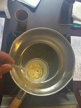 リップクリームとスキンクリームは蜜蝋を湯煎で溶かして固めます。